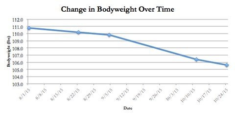 Throughout the duration of this 10-week experiment, I lost a total of 5.2lbs off the scale and 2 inches off my waist, dropping from 110.8lbs to 105.6lbs and 25.0 inches to 23.0 inches, respectively.