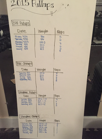 As well, tracking your progress from week to week can be incredibly helpful in determining whether or not you are indeed moving in the right direction. Above you’ll see my whiteboard that I’ve been using this year to log my numbers over time.