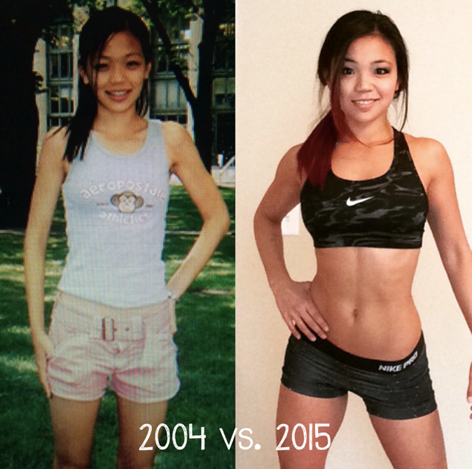 On the right, I’m 25 years old and I have over seven years of strength training under my belt. I’m still 5’2″ (unfortunately) and my weight is at 108lbs. I’ve followed the four basic principles above for long enough to see positive change take place in my physique. As I write this, I can squat 160lbs, bench press 105lbs, and deadlift 215lbs.